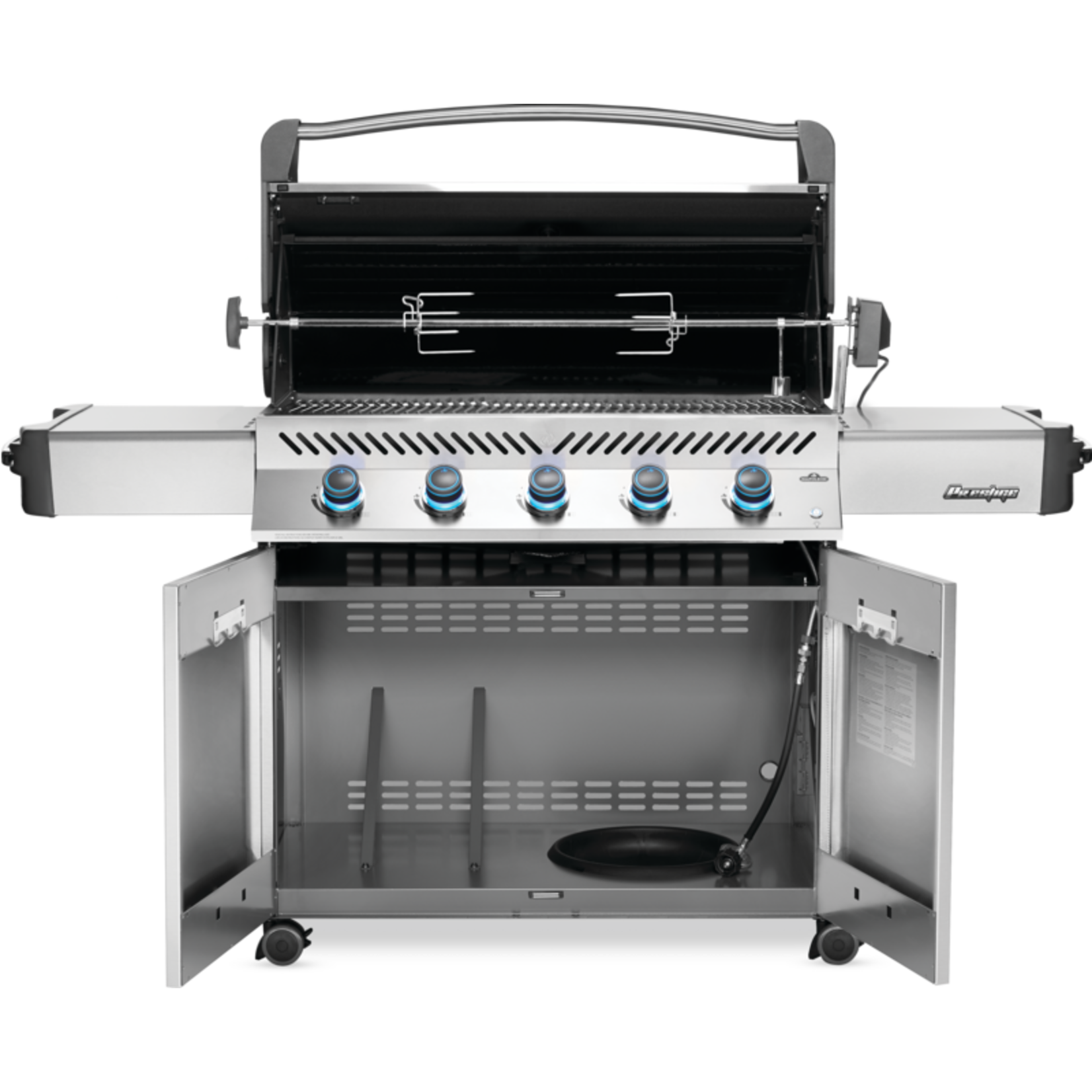 - The Stainless Steel Prestige P665 Propane Gas Grill features 5 burners, 60,000 total BTU, and 1000 square inches of total grilling area